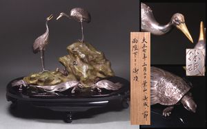 慶應◆大正七年に大正天皇・皇后両陛下より御下賜 帝室技芸員【海野勝眠】作 岩上鶴亀床