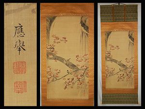 ●円山応挙●保証●瀑布櫻花図大幅●国井応陽鑑定書付●二重箱●円山派祖●肉筆●掛軸●
