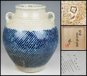 人間国宝【島岡達三】最上位作 塩釉象嵌縄文壷 抜群の発色! 共箱 保証