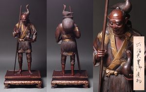 慶應◆明治天皇御遺物 銅造鵜飼像 御棚飾 萩蝶蒔絵台座 御下賜品