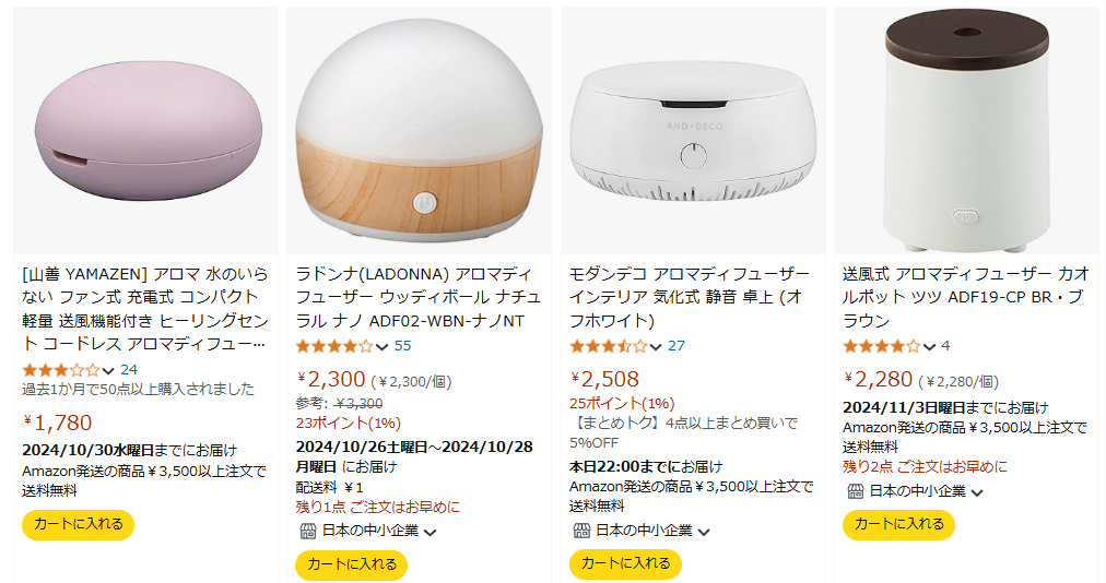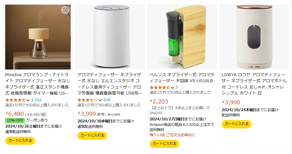 なかでも、水なしで使えるアロマディフューザーは、「面倒なお手入れがなく、水を使わないので衛生的に使える!」として人気です。