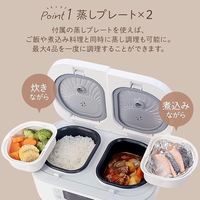 - 炊飯以外に蒸し料理などもできる