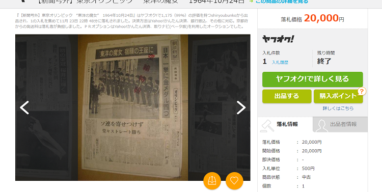 - 【新聞号外】東京オリンピック “東洋の魔女” 1964年10月24日 落札価格:20,000円