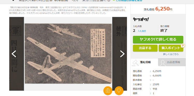 - 第2次大戦の対日伝単 軍陣新聞 号外 東京二回空襲さる 落札価格:6,250円