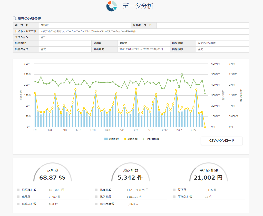 平均落札額が、約86,000円から約72,000円まで落ちているのが分かります!