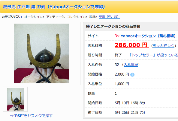 桃形兜 江戸期 鎧 刀剣 落札価格:286,000円