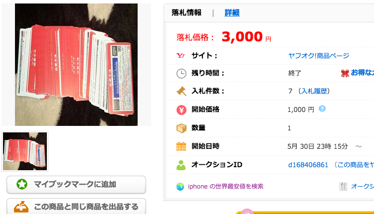 コラボnanacoカードは17000円で落札されていました!
