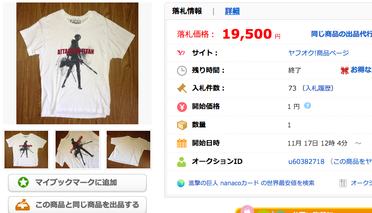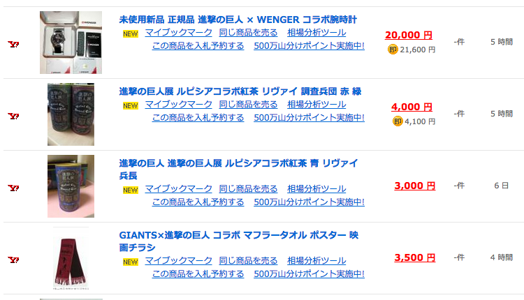- 「進撃の巨人 コラボ」 – 開催中オークション一覧