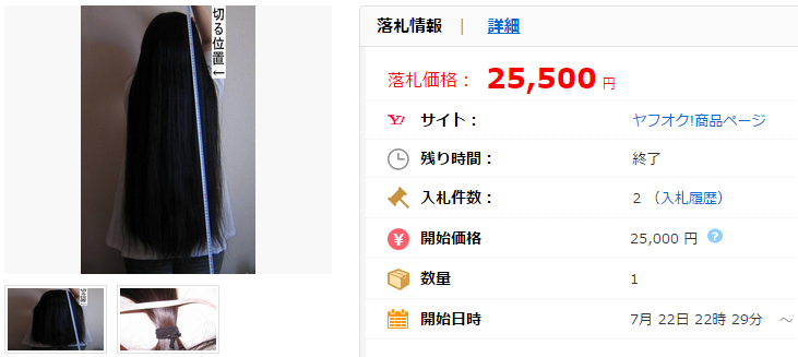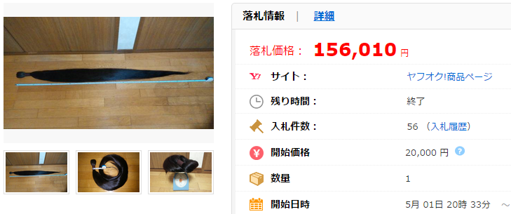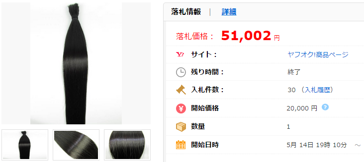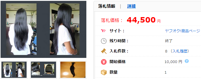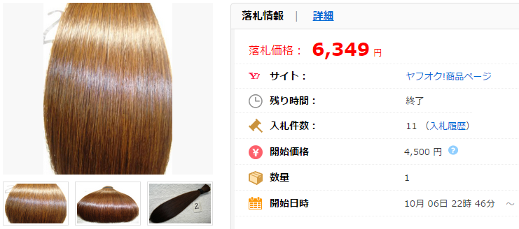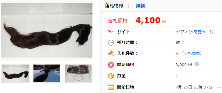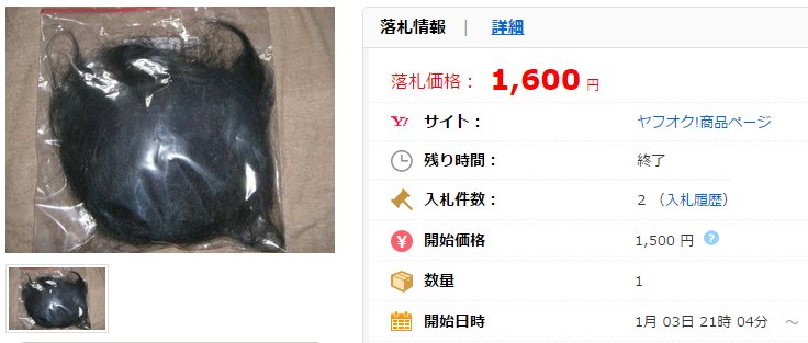 こちらの商品のように10万円を超えることはかなりのレアケースですが、「髪の毛」の出品自体はヤフオク!において特段珍しいものではありません。