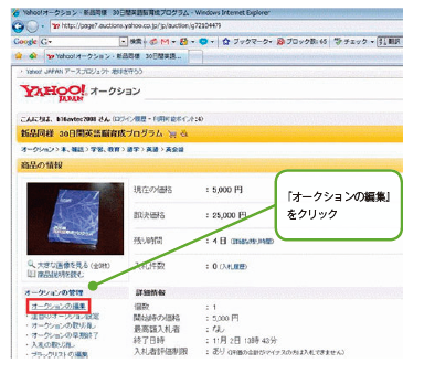 『オークションの編集』をクリックすると、編集ページに切り替わります。