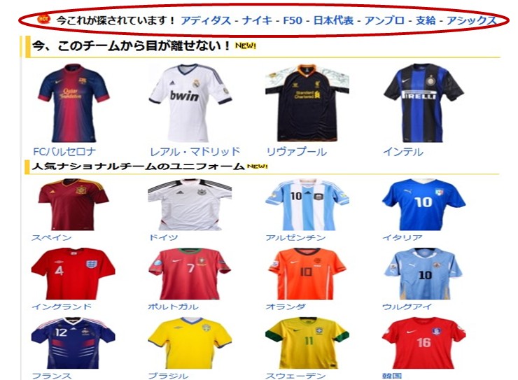 各カテゴリのTOPページを見ると人気商品の特集が組まれています。