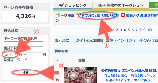 画面左側にある、“サイト別絞込”のところに金額を入力して、