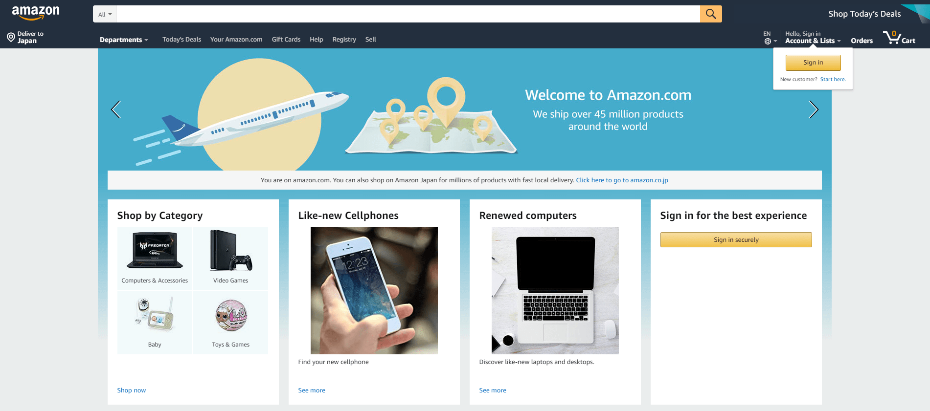 Amazonジャパンと米国amazonの見た目の違い