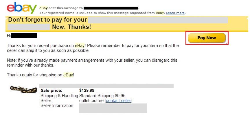 ebayで落札が決定すると、あなたのメールアドレスに