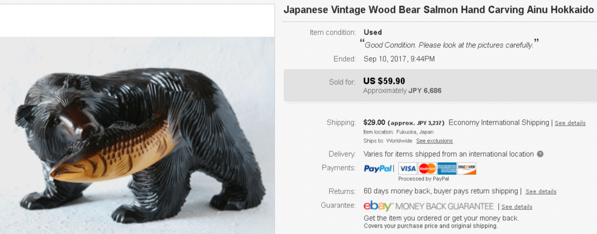 木彫りの熊の置物を日本で売っても、有名な作家の作品でなければ、なかなか高くは売れないでしょうが、