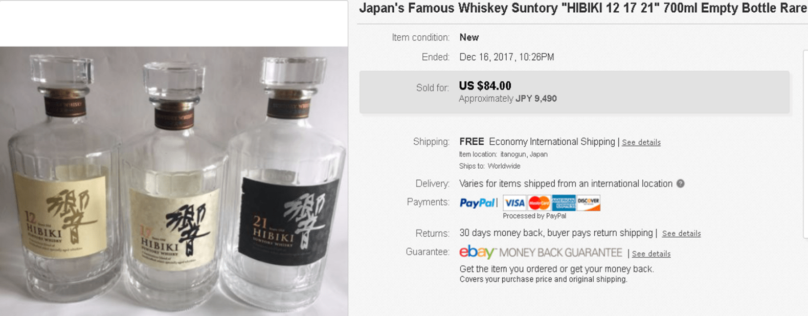 でもeBayでは、響の空き瓶が、すごくたくさん売れているのです。