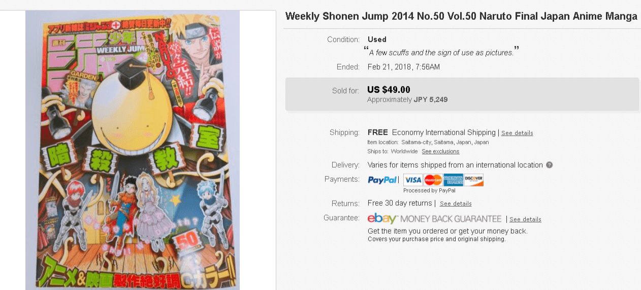 NARUTOのファンなら、記念すべき最終回が掲載されている少年ジャンプが欲しい!