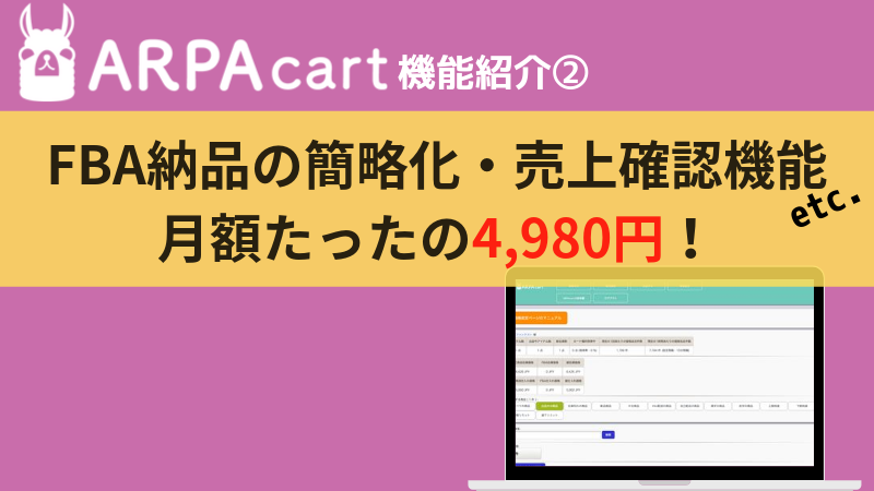 「ARPAcart」機能紹介② ーFBA納品の簡略化、売上確認などもついて月額4,980円!ー