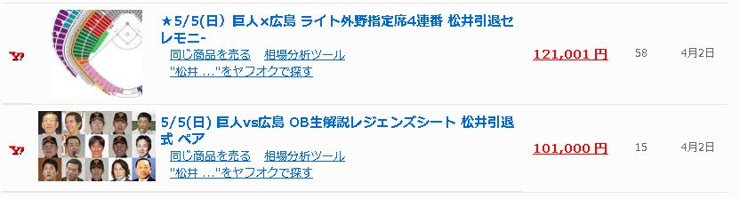 「松井 引退」オークション落札相場