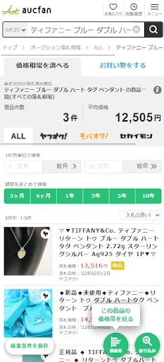 こちらのペンダントを出品する前に、オークファンで価格相場を調べてみました。