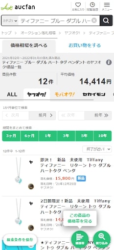 なので今回ティファニーのペンダントの場合、オークファンを使って最大16,990円で売れたことがわかったので、新品なら15,000円前後で販売できるのではないでしょうか。