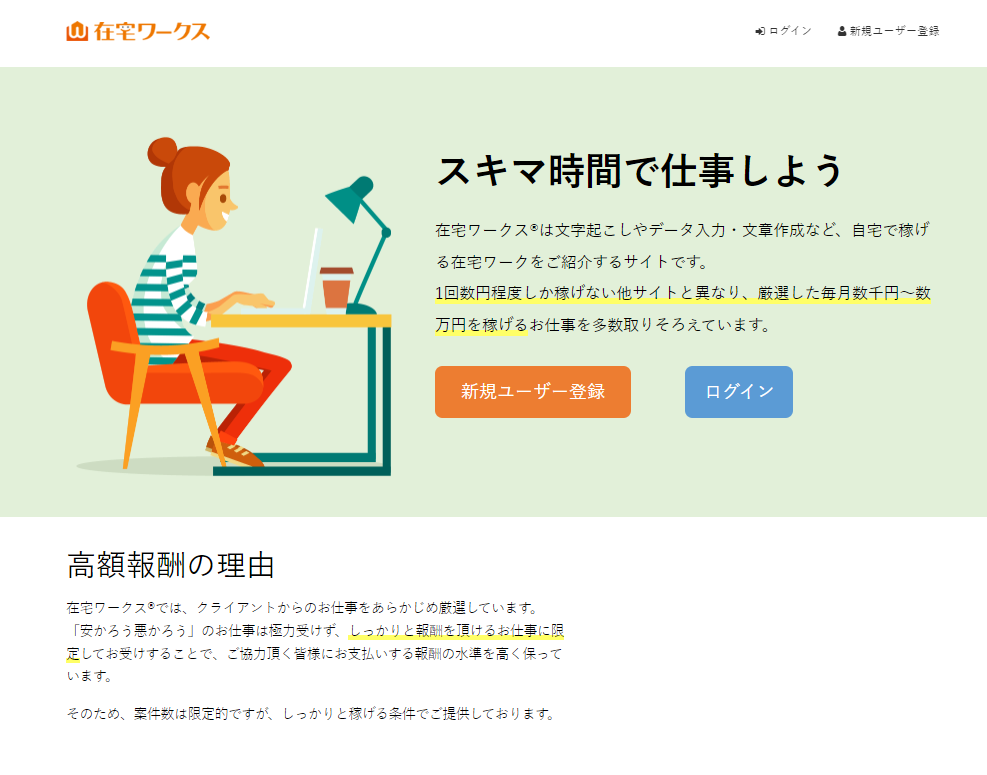 | 特徴 | データ入力や文字起こし、 文章作成の仕事がメイン。 |