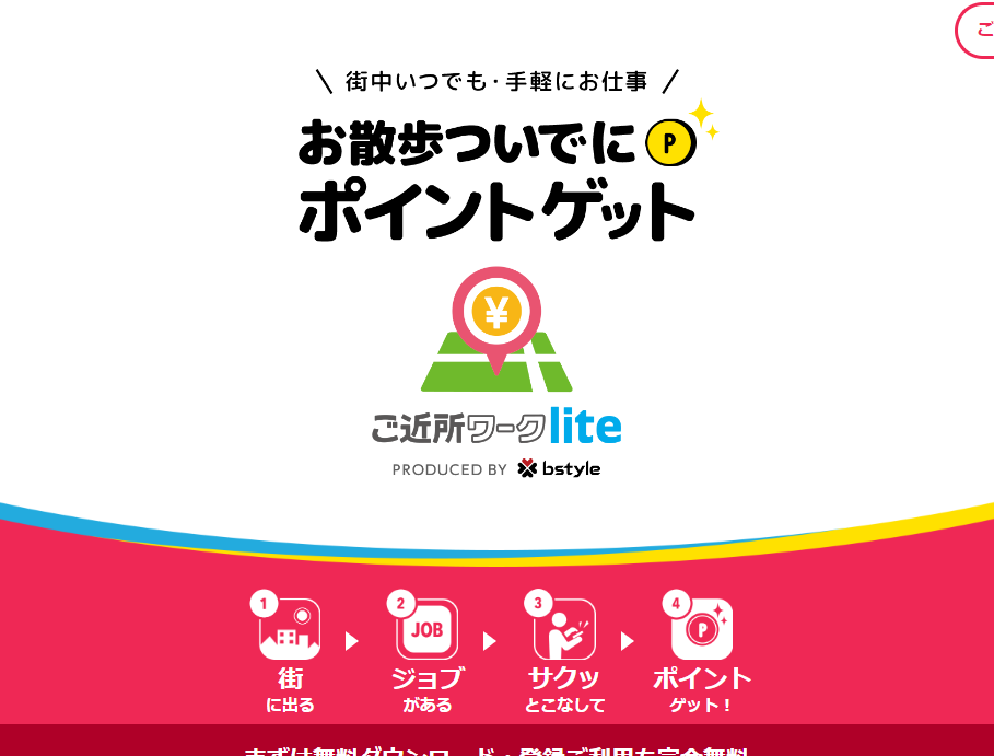 お出かけや散歩ついでにポイ活できるアプリです。駐車場やマンションの外観など指定の場所でスマホから撮影してアンケートに答えるだけで1ポイント1円に換金できます。ご近所ワークliteは12歳以上からの利用可能です。