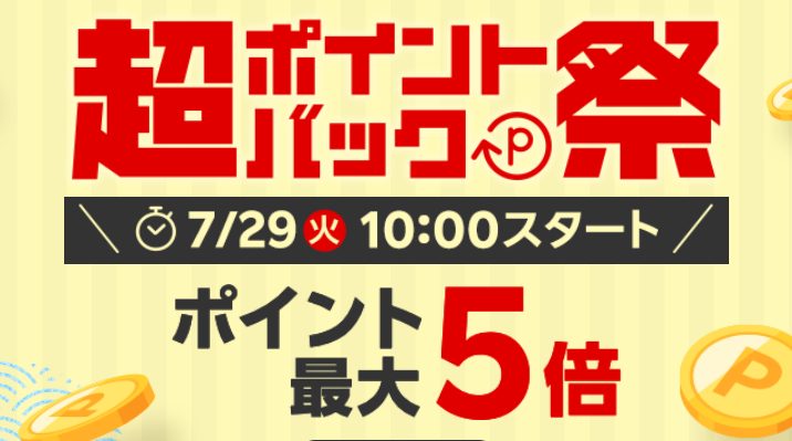 | 超ポイントバック祭 | 1月1日~ 1月3日 | 1月1日~ 1月3日 7月29日~7月31日 | 1月:開催なし 12月:未定 | 1月1日~ 1月3日 12月13日~ 12月17日 |