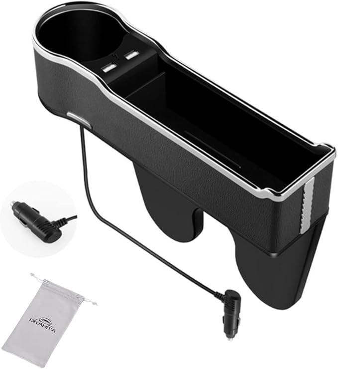 「OKAHITA 車用隙間ポケット」は、運転席や助手席の隙間に取り付けられる収納ボックスです。シートの隙間に置くだけで使用でき、スマホ、財布、鍵、名刺入れ、メガネ、タバコ、駐車券、レシートなどの小物類が収納できます。
