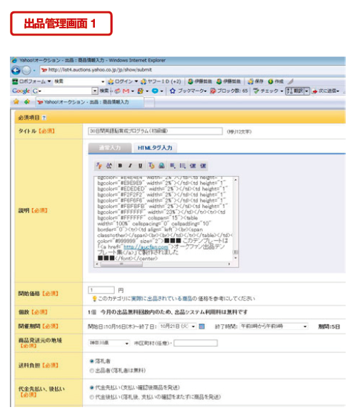 作成した商品説明文を記載します。オークファンのテンプレートを使う場