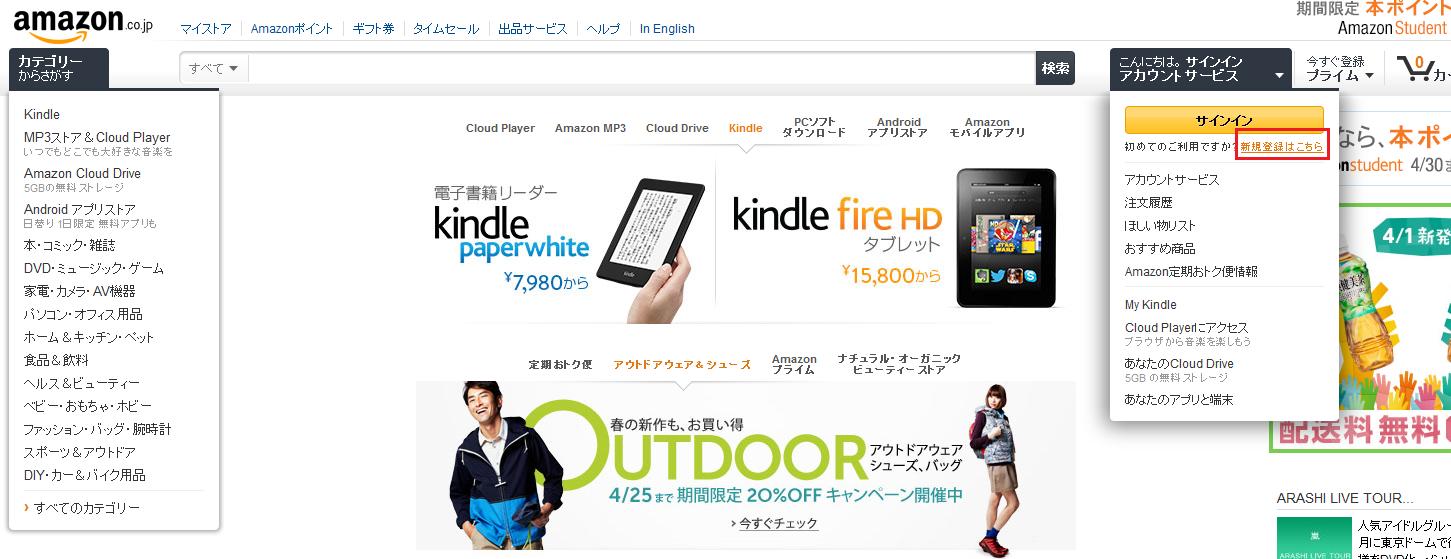 [こんにちは。(あなたの名前)さん アカウントサービス]にマウスを持ってきます。