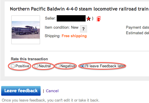 評価したい落札のLeave feedbackをクリックします。