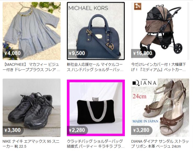 洋服やコスメ商品、キッズ用品など幅広いジャンルのものが出品されていますが、具体的にどのようなものが売れるのか以下で紹介していきます。