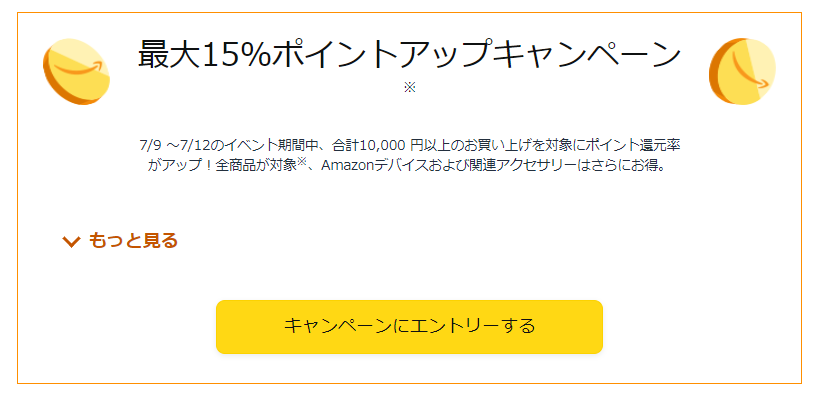 欲しい物だけ安く購入するのも良いですが、プライムデーをさらにお得にするには、ポイントの還元率が高くなる「ポイントアップキャンペーン」に参加しましょう。