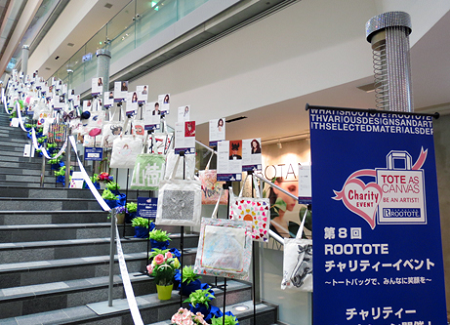 2014年4月にROOTOTEが主催した「第8回 ROOTOTEチャリティーイベント」の一環で、各界の著名人80組がROOTOTEにアートワークを施しました。