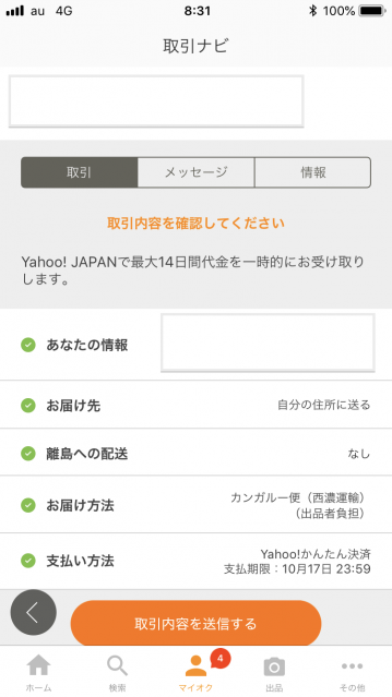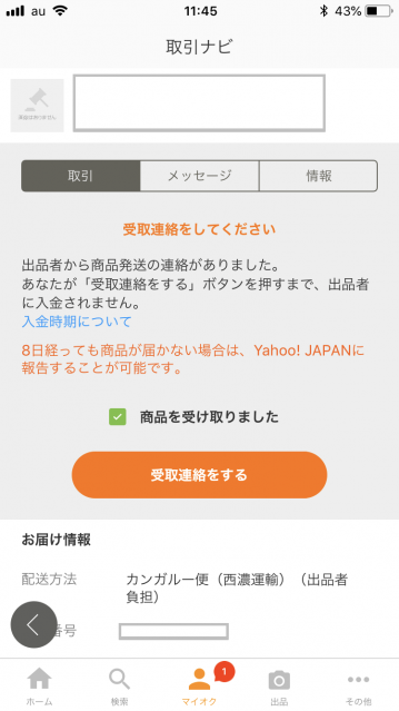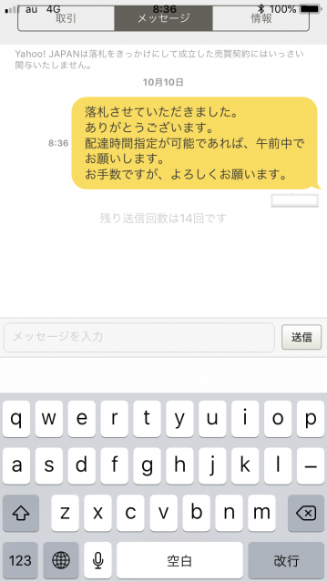 以前は、メッセージを送って出品者と落札者が情報の交換をしていたのですが、取引ナビが使えるようになってからは、ボタン1つで済んでしまいます。