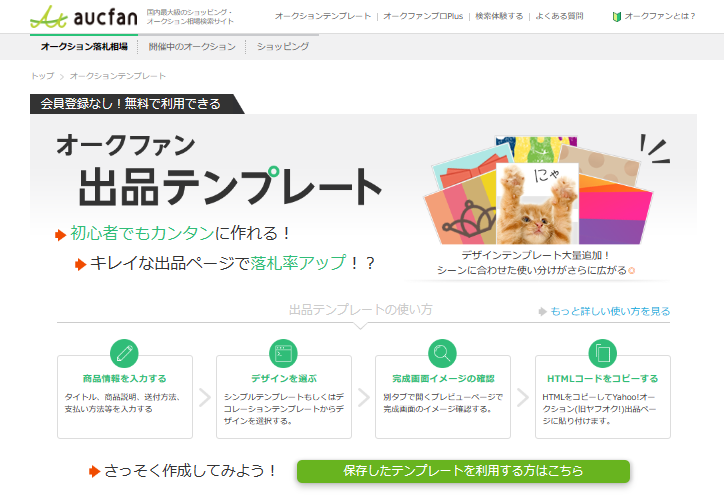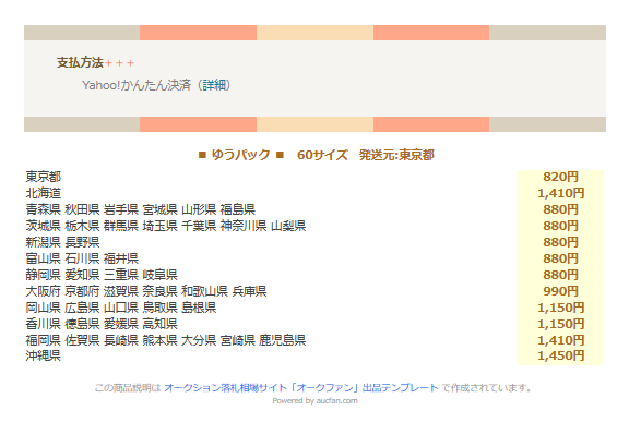 aucfanの「出品テンプレート」を使えば、商品説明文欄をきれいにデザインしながら、「かんたん決済」が利用できることをひと目でわかるようにアピールできます。