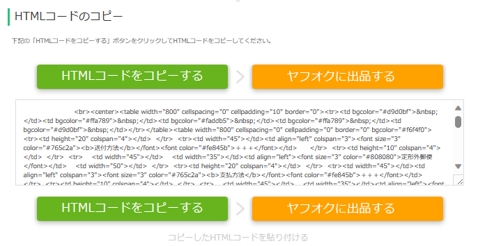 デザインを気に入ったら、下に表示されるHTMLコードをコピーして出品ページを作成時に商品説明文欄に貼り付ければ、入札者に「かんたん決済」が利用できることをアピールできますよ!