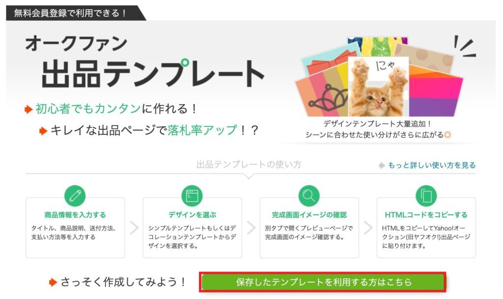 「出品テンプレート」は一般会員(無料)に登録することで、作成したテンプレートの保存や