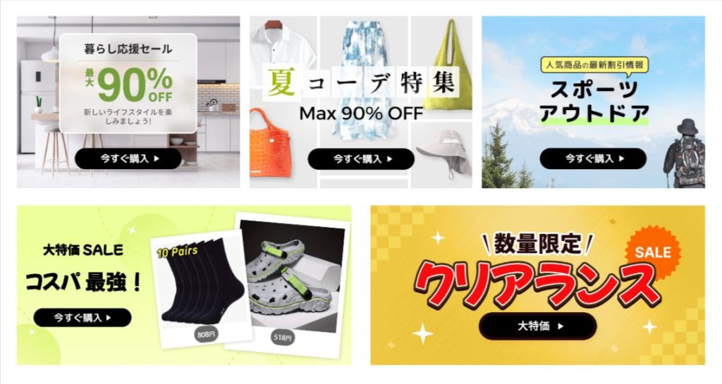 ファッションアイテムはもちろん、雑貨・電子機器、ホーム・キッチン用品などを安い値段でゲットできることから注目を集めています。