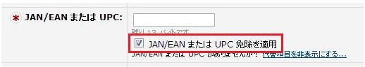 JANコード無しで、カタログ登録をする場合は、「JAN/EAN または UPC免除を適用」にチェックを入れ申請して下さい。