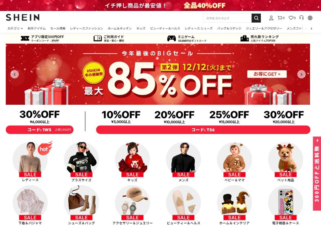SHEINでは、数多くのクーポンが常に配布されています。