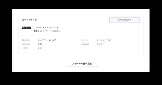 設定されているアラート条件で、現在出品中の商品を検索することができます。