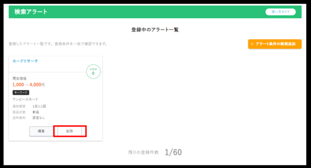 アラート条件を削除するには、各アラートの右下にある「削除」をクリックします。