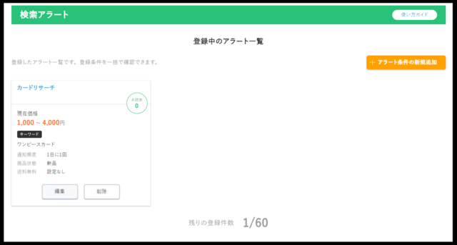 自動で定期的に検索を行う機能なので、効率よく欲しい商品を探すことができます。