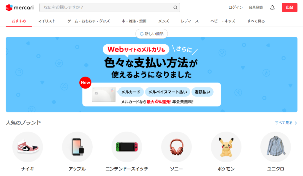 メルカリでは検索機能や商品ページを閲覧するだけであれば、アカウント登録なしでも可能です。