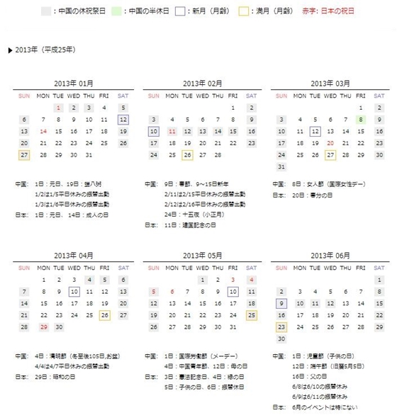 特に注意が必要な2月(新年)10月国慶節(建国記念日)に