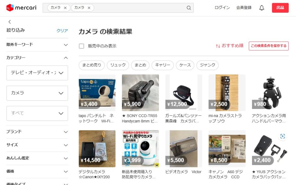 様々なカテゴリーの商品が出品されており、カメラも出品数が多い商品の1つです。
