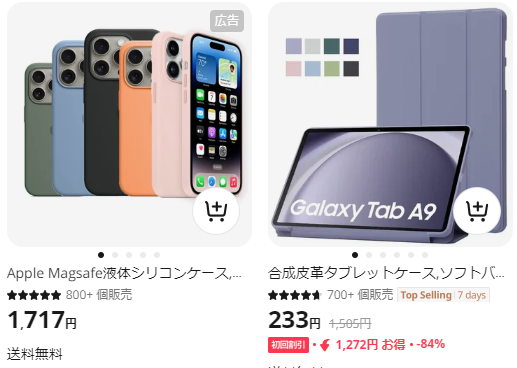 - スマホケースなどのスマホ関連品