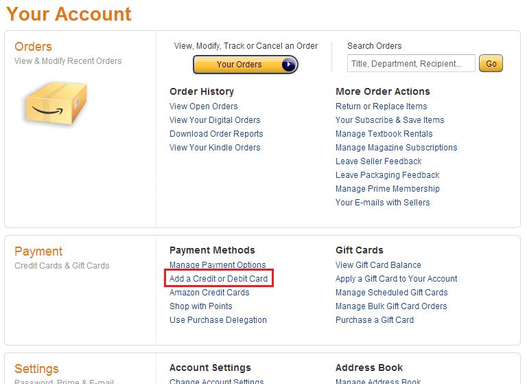 [Add a Credit or Debit Card]リンクをクリックします。